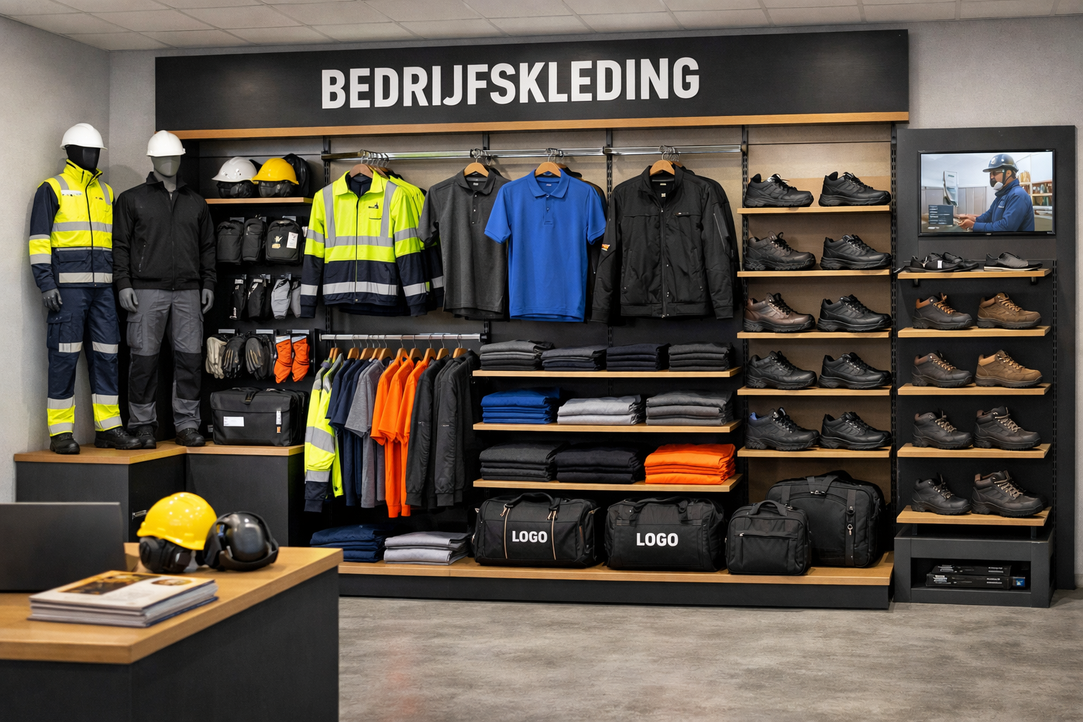 Een eigen webshop met de kleding afgestemd op jouw bedrijf, in eigen huisstijl.